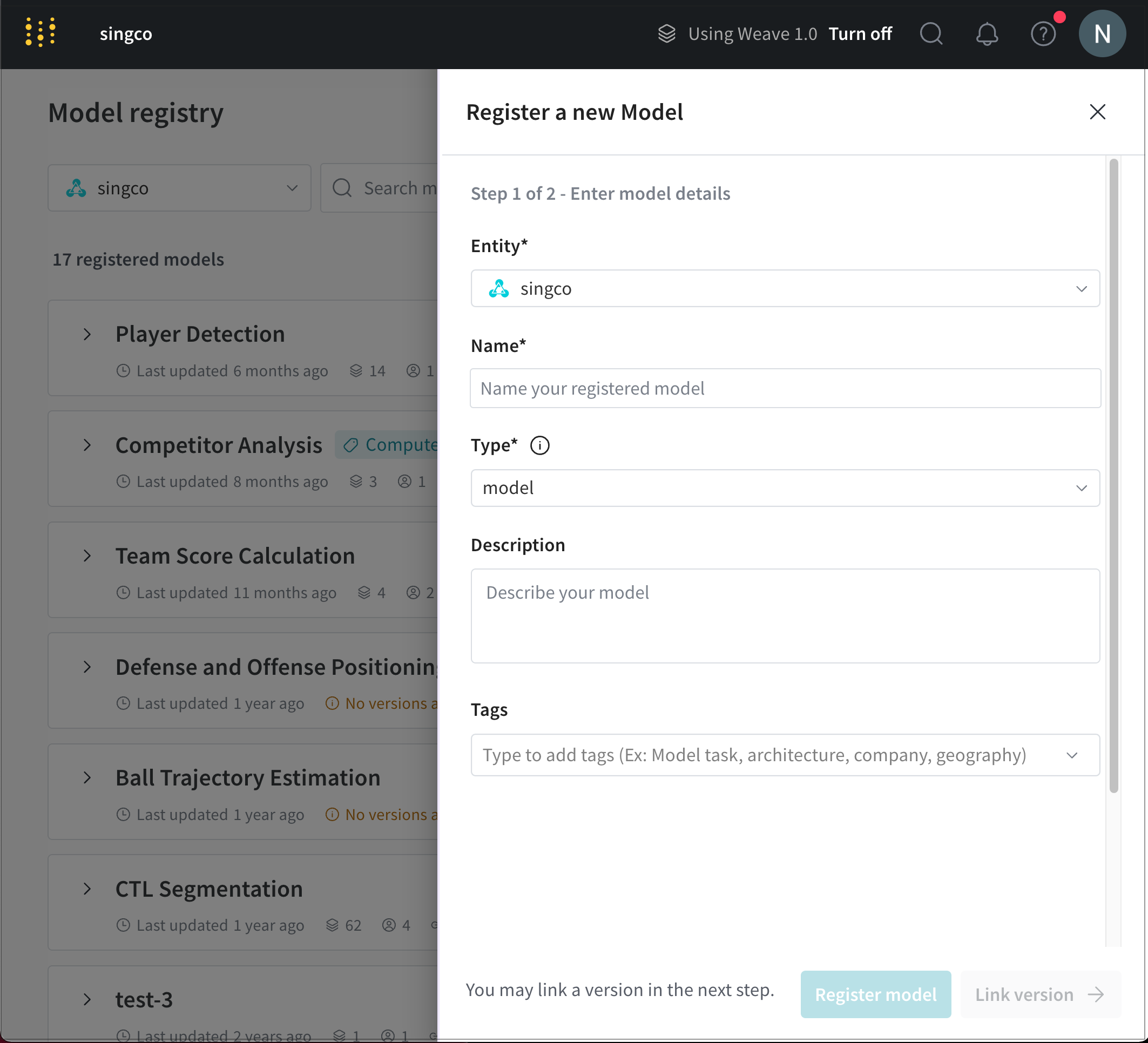 - Click Register model.